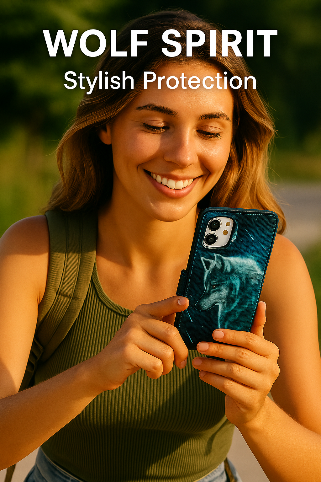 ✓ Hand-Painted Wolf Design - Unique, fade-resistant artwork on premium PU leather ✓ Complete Protection - Full coverage for back, edges, and screen with magnetic closure ✓ Card Storage Slots - Convenient slots for essential cards and cash ✓ Precision Cutouts - Easy access to all buttons, ports, and cameras ✓ Slim & Lightweight - Premium protection without added bulk