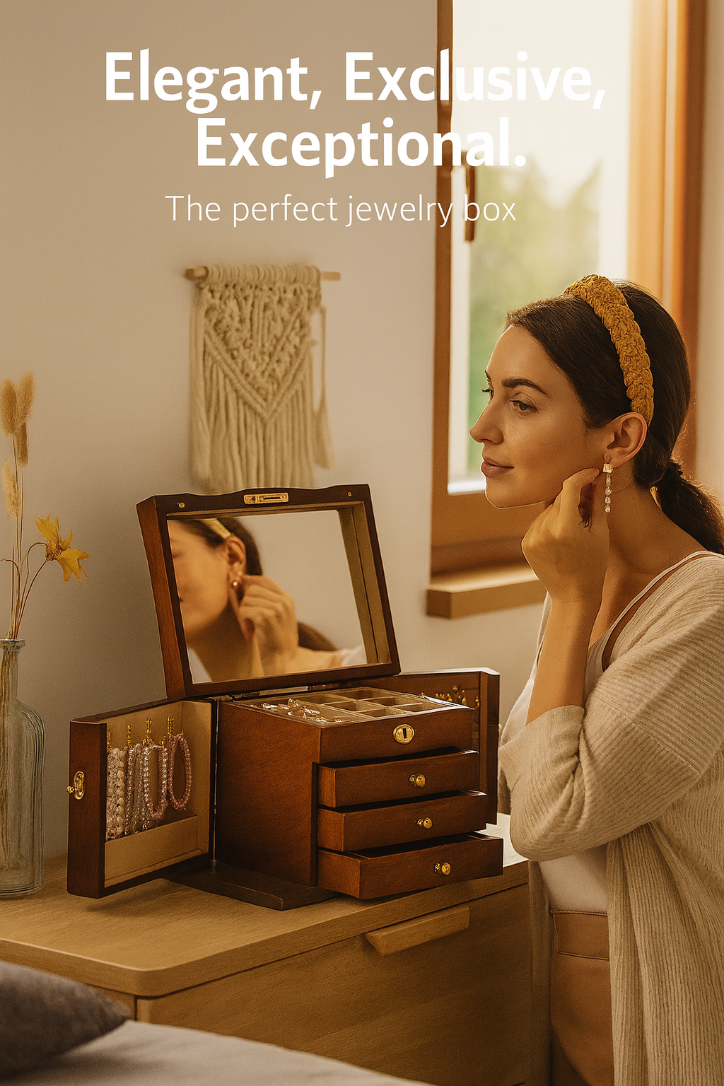 This jewelry box is absolutely gorgeous! The wooden finish is premium quality and the drawers glide smoothly. Finally all my jewelry is organized and protected. Worth every penny!